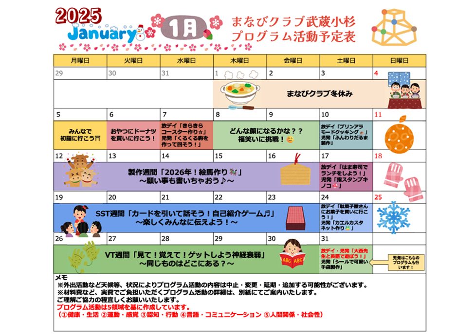 いつもありがとうございます。 まなびクラブ武蔵小杉教室です。 1月のプログラム活...